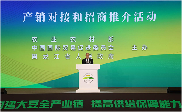 博览会期间,王福代表九三集团出席全国大豆产业博览会招商推介和产销对接会,并作推介发言,他表示,九三集团将进一步发挥国有龙头企业的使命担当,践行振兴民族大豆产业的社会责任,抢抓国产大豆振兴的机遇期,积极示范带动黑龙江省大豆加工转化,以“粮头食尾”“农头工尾”为指引,以做大做强国产大豆精深加工产业链条为导向,引领带动国产大豆产业向高质量方向健康发展。
