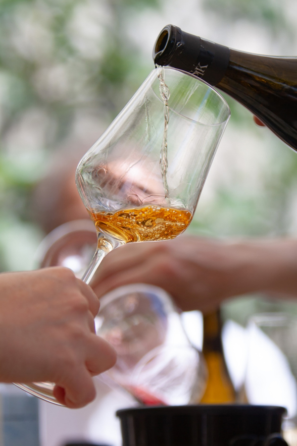 第二个环节,有三位著名酿酒师参与讨论,包括橙酒领域中享有盛誉的格鲁吉亚酿酒师 Iago Bitarishvili。他们讨论了橙酒酿造的各种技术,以及带葡萄皮浸渍的时间、陈酿时间及其它酿造技术如何影响橙酒的风格。他们引领品尝了两款不同的带果皮浸渍的橙酒。这两款酒都来自格鲁吉亚,由白葡萄品种基西 (Kisi)酿造。其中一款在不锈钢罐中酿造,呈现出清新芳香的白葡萄酒风格;另一款是经过了带果皮浸渍六个月,并在埋在地下的大型陶罐中酿造。