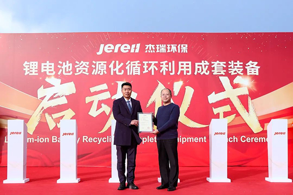 杰瑞环保举办了锂电池资源化循环利用设备新品发布仪式,其中一套新品将发往澳大利亚,助力澳洲首个锂电池循环利用标杆示范项目建设。