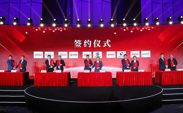 重大项目是锂电池循环利用产业建设发展的“动力源”和“强支撑”。为搭建行业高质量发展平台,大会举办了锂电池资源化循环利用项目集中签约仪式,杰瑞环保与万华化学集团电池科技有限公司、上海建工环境科技有限公司、国轩循环科技有限公司、Ukrenego公司、Shinwoo公司签订合作协议,在锂电池资源化处置工厂建设、锂电池破碎回收项目建设、新能源电池材料生产、环境治理、设备研发与制造等领域达成广泛合作。这是全球锂电池资源化循环利用领域首个大规模集中签约仪式,通过一系列高质量战略合作项目签约落地,杰瑞环保将与合作伙伴共同推动锂电池再生循环利用,为全球新能源高质量发展注入新动能。