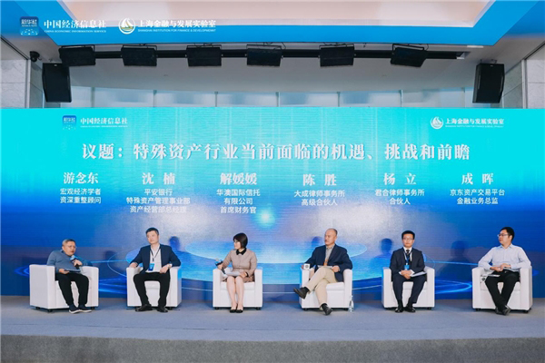 特殊资产行业市场潜力巨大,但同时专业化需求不断提升、行业市场竞争愈发激烈,从而对服务机构提出了更高的要求。在圆桌论坛环节,大成律师事务所高级合伙人陈胜、华澳国际信托有限公司首席财务官解媛媛、君合律师事务所合伙人杨立、平安银行特殊资产管理事业部资产经营部总经理沈楠、京东资产交易平台金融业务总监成晖围绕“特殊资产行业当前面临的机遇、挑战和前瞻”展开研讨。宏观经济学者、资深重整顾问游念东担任主持。
