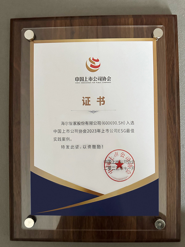 近日,由中国上市公司协会主办的“中国上市公司可持续发展大会”在京召开。会上,中国上市公司协会发布了《2023中国上市公司ESG最佳实践案例》。其中,海尔智家ESG案例《守护星球探索绿色低碳未来》获评“2023年上市公司ESG最佳实践案例”,这也是行业唯一入选的案例。