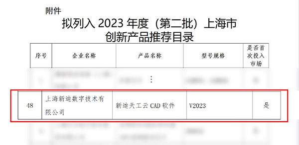 新迪天工云CAD、图纸通、3DSOURCE零件库三款产品先后入选《2023年度上海市创新产品推荐目录》,意味着新迪数字的创新产品符合战略性新兴产业发展导向,充分体现了相关政府部门对新迪数字技术创新能力和市场竞争力的认可。