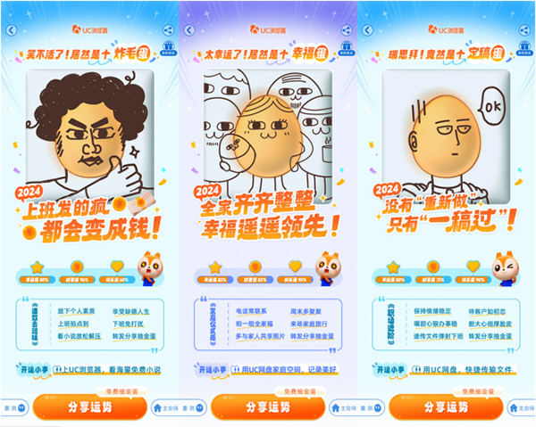 2024年的脚步越来越近。面对崭新的一年,你为自己立下了怎样的flag,又有哪些新计划、新打算?在2023-2024跨年之际,UC浏览器发起“画蛋测运势”H5互动,以“蛋”为好意头的载体,邀请用户在线画圆蛋、许蛋愿,为新的一年祈愿开好运,让好事在UC“蛋”生,记录下对新一年的美好憧憬。