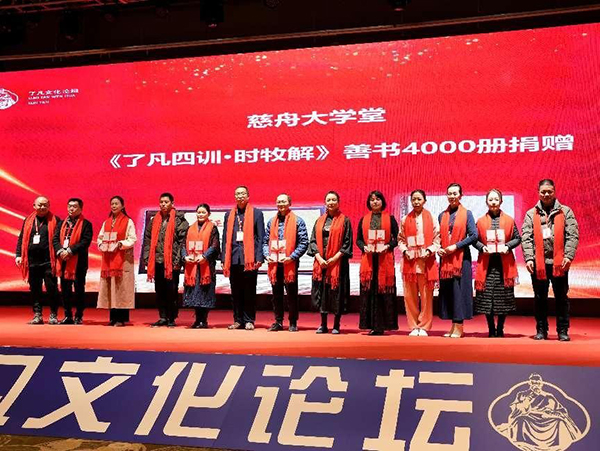 2023年12月26日,恰逢了凡先生诞辰490周年。由中教未来教育集团、慈舟大学堂、心之家(苏州)咨询管理有限公司等联合发起的首届“了凡文化论坛”于了凡先生故里浙江嘉善隆重举办。论坛邀请了袁公了凡第十四世女孙袁维平女士、中国政法大学郭继承教授、南开大学齐善鸿教授、欧洲自然科学院魏坤院士、东莞市泰威电子有限公司创始人李文良博士、慈舟大学堂创始人时牧先生等国内研究“了凡文化”的专家、学者、企业家以及社会各界“了凡文化”爱好者、实践者、传播者共计460余人参加了论坛。