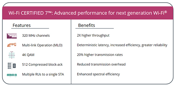 Wi-Fi CERTIFIED 7™现已正式推出,引入了强大的新功能,可提升Wi-Fi®性能并改善各种环境中的连接性。Wi-Fi CERTIFIED 7的尖端功能可实现依赖于高吞吐量、确定性延迟和关键流量更高可靠性的创新。新的使用案例——包括多用户间的AR/VR/XR、沉浸式3D培训、电子游戏、混合工作、工业物联网和汽车——将随着最新一代Wi-Fi的发展而进阶。Wi-Fi CERTIFIED 7代表了Wi-Fi Alliance®广泛合作和创新的巅峰,促进了全球产品的互操作性和强大、复杂的设备生态系统。