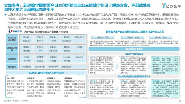 但亿欧对新迪数字做出高度评价,认为“新迪数字提供国产自主创新的制造业三维数字化设计解决方案,产品成熟度和技术能力比肩国际先进水平。”