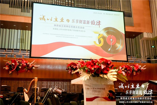 诚以立业,乐享财富新旋律。1月9日,由陕西省委精神文明建设指导委员会办公室、陕西省委直属机关工作委员会主办,陕西省国际信托股份有限公司(以下简称“陕国投”)承办的陕西省文明单位创建示范活动“陕国投上市30周年暨客户答谢新年音乐会”在西安音乐厅成功举办,千余名嘉宾、客户应邀而来。