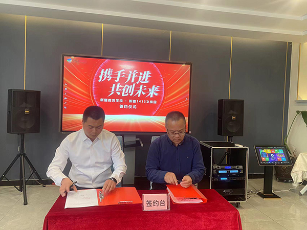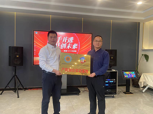 活动现场,双方进行了亲切地交流洽谈。新疆教育学院党委书记李斌与1413文化体育产业园总经理吴长江进行了项目合作签约。新疆教育学院向1413文化体育产业园授予“产教融合实训基地”铜牌。