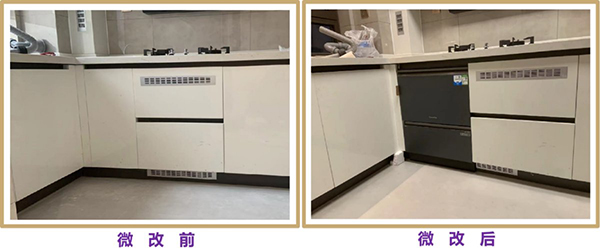 而应对洗碗机的厨房改造问题,卡萨帝为杨先生提供了1+7+N的七星级专业局改服务。从上门测量、提供方案,到拆装橱柜、精细封边,不到3个小时就将洗碗机完美嵌入橱柜。操作洗碗机时不用弯腰,整体厨房也更融合,杨先生对现在的厨居改造效果非常满意。