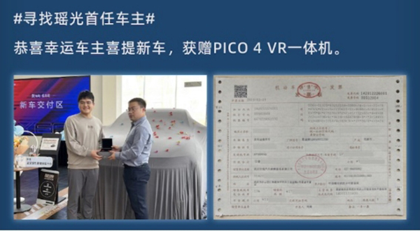 此外,瑶光联合PICO VR发起#寻找瑶光首任车主#征稿活动,邀请用户试乘试驾后反馈体验稿件,向最终提车用户赠送PICO VR一体机,鼓励用户分享提车视频。真实车主通过图文、视频、笔记等各种形式晒物,内容背景包含瑶光汽车和PICO VR设备,为两个品牌带来大量曝光机会,在项目期间为瑶光导流试驾订单总数突破1500个,实现高效转化。