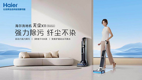 亮眼表现的背后,离不开科技创新的强大支撑。据介绍,不同于市面上其他洗地机,海尔洗地机无尘X11 Station搭载行业首创的双动力洁净科技,一体式双刷设计,不管向前向后都是双倍清洁地面,配合风旋增压风道,保证18000Pa强大吸力完整输出,聚污效果更好。不仅如此,该产品采用行业领先的弹性臂科技,浮动金属刮刀实时紧贴滚刷,深入根部清理污垢,滚刷污水回收率提升12%;配合行业首创的中子式活水喷淋科技,16孔花洒式喷水,保证滚刷干净的同时没有多余水渍。