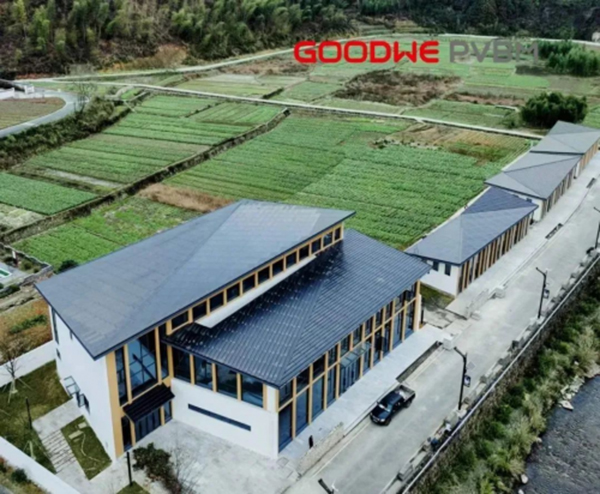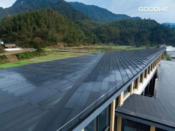 本项目采用固德威的旭日光伏瓦作为发电组件,结合金属块瓦屋面,为乡里中心540m²的屋面赋能。因项目为南北两坡的不对称屋面,为适配屋顶造型的同时最大化发电效率,在既往普通旭日瓦产品的基础上,项目实施团队再次优化方案,采用了AB双款旭日光伏瓦。不同于常规组件的平铺,本次项目采用了瓦片上下搭接的形式,以实现更好的防水和散热性能。此外,固德威还在保证光伏瓦原有性能的同时转换了产品的正负极,这种创新型的产品构造不仅使施工更加便捷,还节省了直流线缆的用量。