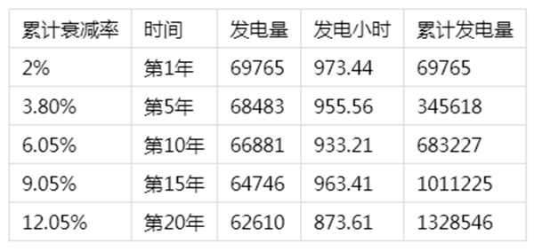 按照项目所在地峰值日照时数3.69h计算,光伏电站发电系统效率为82%,发电量(kWh)计算如下:
