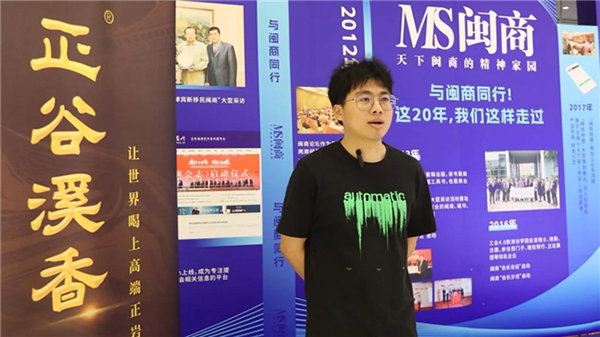 正谷溪香市场部负责人曾辉作为代表接受现场媒体的访问。曾辉表示,作为福建本土品牌的正谷溪香,新的一年也将持续弘扬闽商精神,坚守实业主业,讲好闽商故事,为世界带来岩骨花香好岩茶。