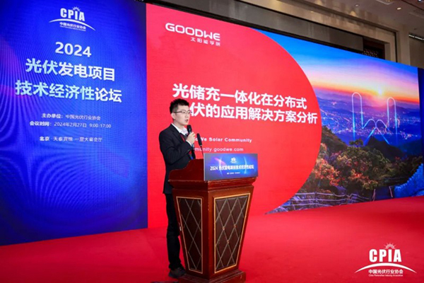 2024年2月27日,龙年开年伊始,中国光伏行业协会在北京召开“光伏行业2023年发展回顾与2024年形势展望研讨会”,固德威受邀出席此次盛会,太阳能学院院长卢欢做了《光储充一体化在分布式光伏的应用解决方案分析》的主旨演讲,分享固德威在光储充一体化上经验和探索。