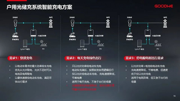 卢欢指出,随着新能源汽车及光伏系统的普及,光储系统耦合新能源汽车的需求越来越强烈,这也让光储充一体化成为新能源未来发展新趋势;固德威作为以光伏逆变器为核心的整体解决方案服务商,基于对市场和客户需求的深刻洞察,相继推出了户用光储充和工商业光储充的全场景光储充解决方案。卢欢分别结合实际应用案例,深入浅出地剖析了光储充解决方案在不同应用场景中的工作模式、方案设计以及项目投资收益测算,让与会者对光储充一体化有了更深入的了解。他说,光储充系统可根据光伏、电池、负载、电网实时情况动态调整新能源汽车充电优先级别及充电功率。