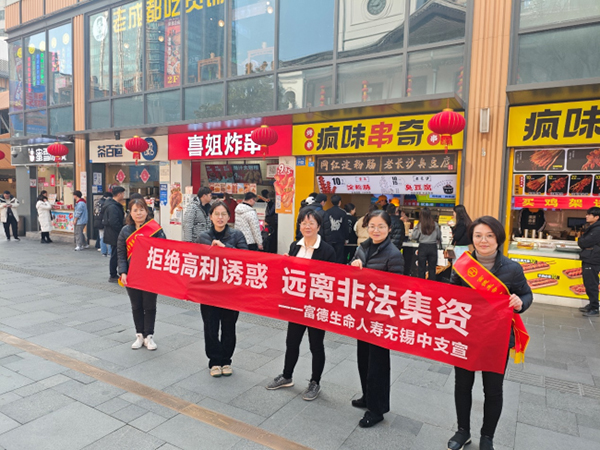 一直以来,非法集资都严重威胁我们社会经济和金融安全,为了保护公众的财产安全和维护社会正义,富德生命人寿无锡中支一直在行动。