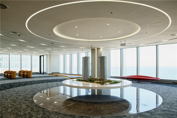 交易广场采用水立方专用的Low-e玻璃幕墙,采用“三玻两腔Low-e中空玻璃”与高分子硅基隔热材料等幕墙技术,达到新国际绿建三星环保标准;并使用了卢浮宫、迪拜帆船酒店、水立方、鸟巢等世界级工程所使用的超白玻璃,除了拥有超高的安全性,更以92%以上的透光率让办公空间达到近乎极致的通透感。