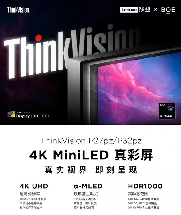展会现场,联想推出搭载BOE(京东方)领先的主动式玻璃基Mini LED显示技术的4K 31.5英寸显示器产品,该款屏幕采用广色域技术,Adobe RGB色域达99%、屏幕峰值亮度1200nits,并搭配178°广视角、1000:1静态对比度的ADS显示屏,使画面呈现还原真实色彩的超清细腻显示。在性能方面,由于配备BOE(京东方)先进的主动式玻璃基技术,使其具备1152控光分区,可实现精准控光;在AR/MR领域,创维推出BOE(京东方)赋能的AR A1、MR PANCAKE 2等具备显示“黑科技”的产品。其中,PANCAKE 2采用BOE(京东方)Micro OLED 1.35英寸显示屏,具备单眼4K、双眼8K分辨率。