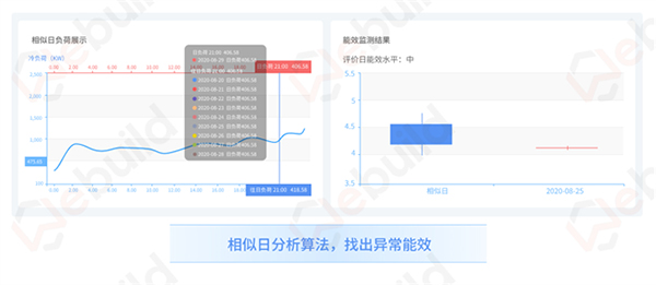 引入气象因素、日期差距、星期类型、重大节假日数据构建相似日特征向量,通过相似日算法模型找出异常能耗,以保障系统时刻处于最优节能状态。