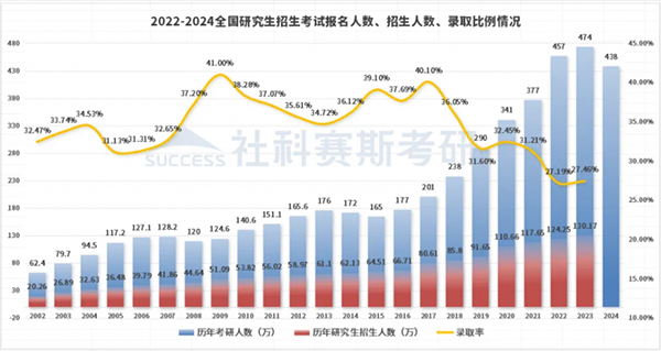 据统计,今年考研有438万考生参考,虽然较去年减少了近36万人但考研的竞争仍然激烈。据教育部公布了2024年全国硕士研究生招生考试考生进入复试的初试成绩基本要求(考研国家线)显示,在今年考生总数减少约7.6%的情况下,哲学、法学、文学、历史学、理学、医学和交叉学科等多个专业的国家线却呈现上升态势,对于众多考生来说考研上岸的难度更大了。