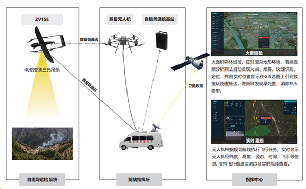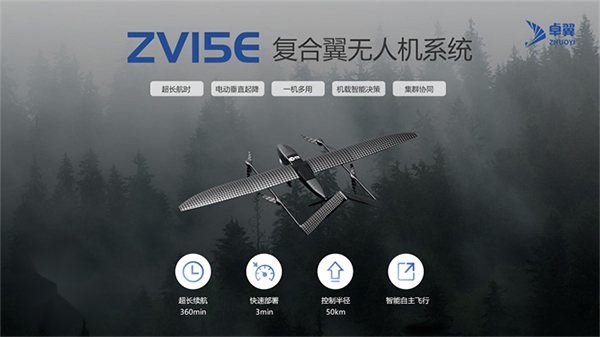 利用卓翼智能ZV-15E复合翼无人机对森林进行日常巡护,可显著提高了森林巡护工作的效率和质量。ZV-15E操作简单、扩展性好、一机多用,可通过多种通讯链路进行远程控制,火场高清视频实时回传;配合专业测绘载荷可对火情现场进行图像采集,快速建立火场正射、实景三维地图,辅助科学部署决策;6小时超长航时可对林区进行大规模高频次巡查,火情隐患及时发现。