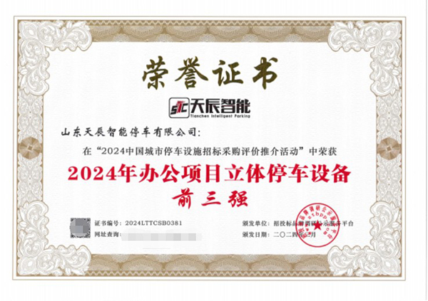 近日,作为国内立体停车设备领域佼佼者,山东天辰智能停车有限公司凭借其出色的产品品质、雄厚的技术实力和卓越的市场表现,在招投标品牌调研公示服务平台举办的“2024中国城市停车设施招标采购评价推介”活动中再创佳绩,一举斩获“2024政府采购立体停车设备十大品牌”“2024年办公项目立体停车设备前三强”“2024年医院项目立体停车设备前三强”奖项,再度证实了其在立体停车设备领域的领先地位,引起了业界的广泛认可和关注。