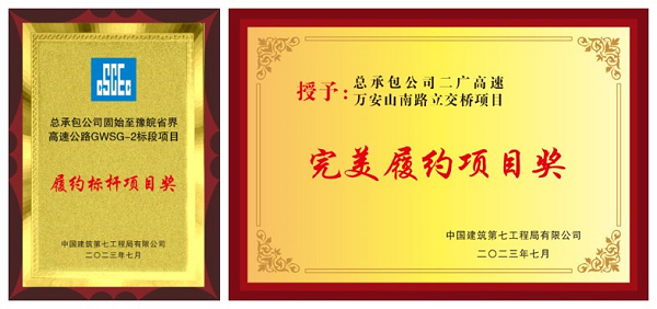 在建项目中,固皖高速项目 2023年 12次进入工程局、公司产值榜单,与进度、质量管理同样优秀的二广高速立交桥项目分别获评中建七局“履约标杆”和“完美履约”项目。