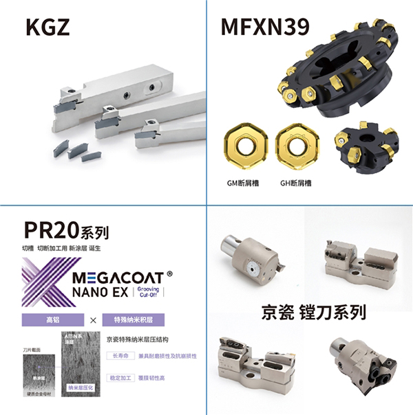 本次京瓷展台,将展出各类车削、铣削产品。尤其值得一提的是,京瓷将带来新能源车、医疗整体配刀方案、设备搭载成功案例,以及自动车床用切削加工刀具KGZ、切槽切断加工用新PVD涂层材质PR20系列、高刚性×高精度系统刀具——镗刀系列、高效率×高刚性刀盘MFXN39、高精度小直径整硬钻头KDA Mini等众多新产品,看点颇多!