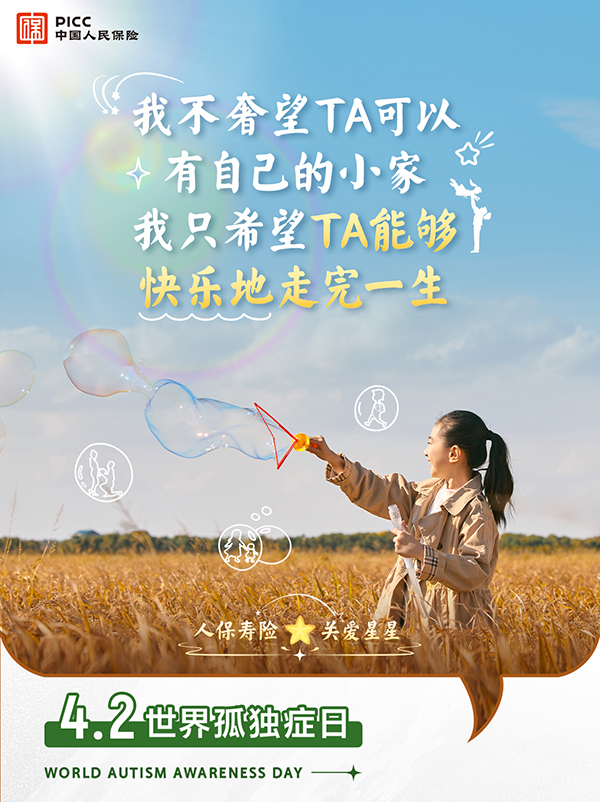 2024年4月2日,是第17个世界孤独症日,今年的宣传主题口号是:“全生涯服务,全方位关爱”。近年来,孤独症儿童数量逐年增加,日益受到社会关注,媒体及社会各界向孤独症儿童和家庭倾注了无限的关爱。为助于解决孤独症等心智障碍患者家庭的痛点,人保寿险在深入调研走访“星星”家庭后,于2022年底正式推出了人保寿险“关爱星星”年金保险,并与中诚信托联手,推出年金保险+特殊关爱信托的创新模式。