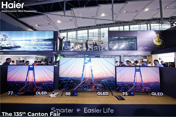 4月15日,第135届中国进出口商品交易会(以下简称“广交会”)在广州启幕。海尔智家电视携4款产品亮相展会,以高刷120Hz屏、Mini LED屏幕、哈曼卡顿音响、Dobly音响算法等高端科技为现场参观者带来大师级画质及音质体验。