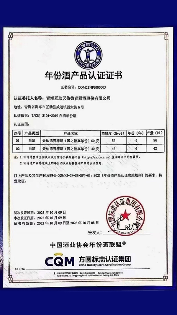 2023年6月,公司发布《天佑德青稞酒技术标准体系》白皮书,进一步规范青稞酒行业体系标准和行业准入门槛。10月,公司“国之德真年份6年”产品正式通过中国酒业协会年份酒联盟认证,是国内为数不多的获得年份酒认证的白酒企业。此外,还举办了高端产品“德天下·零号酒样”上市五周年庆典活动,得到十位中国知名酒业专家和国内品酒师、酿酒大师对产品的极高评价。
