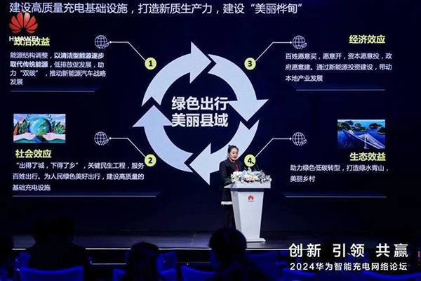 吉林省源达新能源有限公司总经理刘丹丹发表了主题演讲,探讨了“构建县域高质量充电基础设施,打造新质生产力,助力新能源汽车下乡”的重要性。