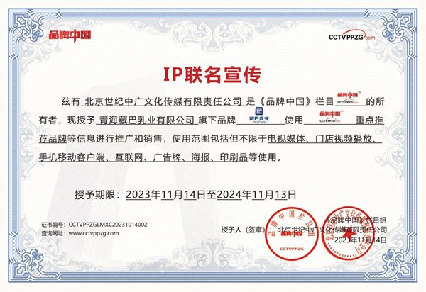 在2023年,青海藏巴乳业荣获中央电视台《品牌中国》栏目的重点推荐品牌称号。央视的认可不仅是对藏巴乳业多年来在特色乳品领域所作出贡献的肯定,也助推了藏巴乳业向更高发展阶段迈进。面对这一荣誉,藏巴乳业决心保持其创业宗旨,继续在青藏高原深耕细作,推动品牌不仅走出青海,还要迈向国际舞台。