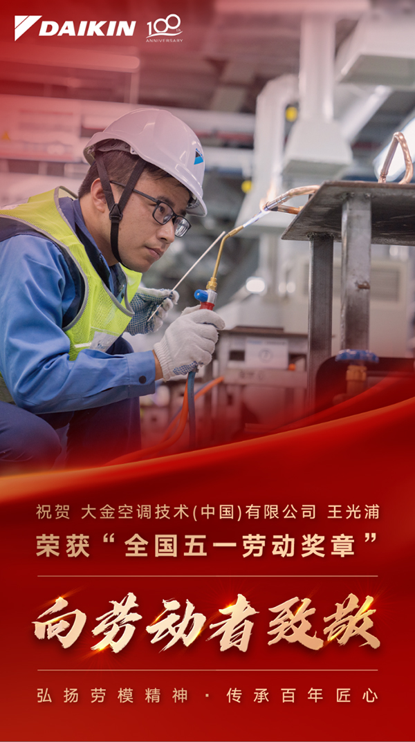 今年是大金集团创立100周年,此次荣获“全国五一劳动奖章”的王光浦,是大金一百年来万千员工的一个缩影,这些身影或许在研发实验室、在工厂流水线、在用户工地、在项目抢修现场……他们身份不同,但来自同一个大金,他们用实际行动践行着初心与使命,这就是最质朴、最平凡的劳动者形象。