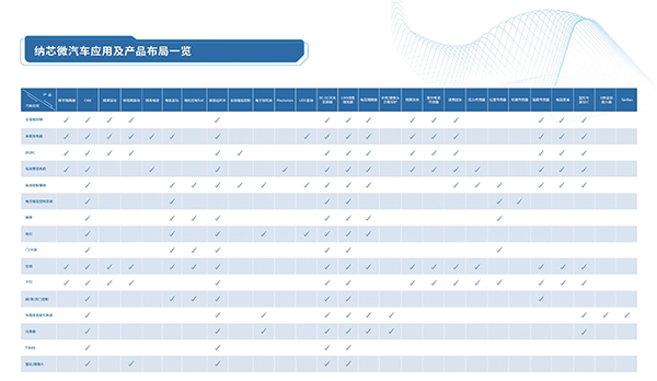 纳芯微的汽车应用产品品类