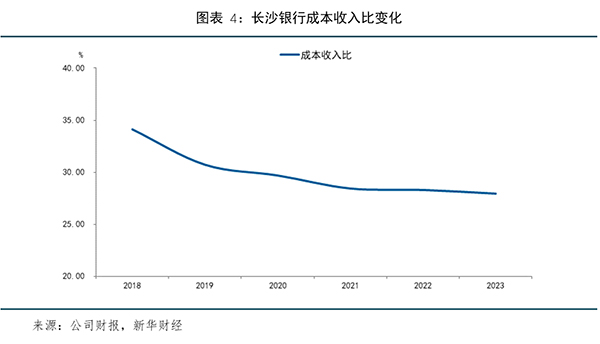 成本收入比连续五年下降,降本增效全面深化。2023年,长沙银行业务及管理费69.33亿元,同比增长7.13%,成本收入比27.95%,同比下降0.35个百分点。近年来,长沙银行加大资源投入县域战略和零售转型,同时持续深化降本增效,全面加强费用管控,其业务及管理费增速始终保持在营收增速以下,成本收入实现连续五年下降,运营管理效率达到同业较优水平。