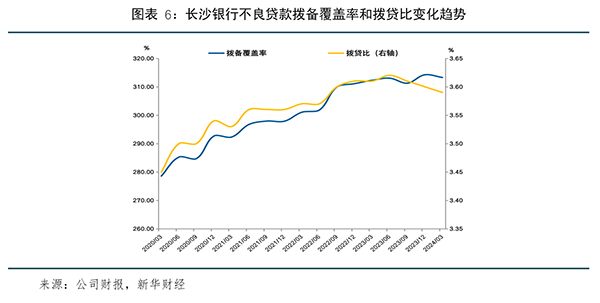 拨备水平高位维持稳态,风险抵补能力整体充足。截至2023年末,长沙银行不良贷款拨备覆盖率314.21%,较上年末上升3.12个百分点,拨贷比3.60%,较上年末小幅下降0.01个百分点,抗风险能力保持稳定。根据国家金融监督管理总局数据,截至2023年末,商业银行拨备覆盖率为205.14%,城商行拨备覆盖率为194.94%,长沙银行显著高于行业平均水平。