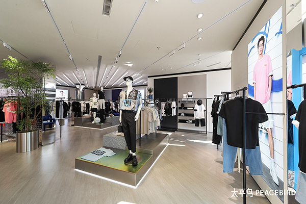 太平鸟此次打造的品牌旗舰店就融合了男/女/乐/童旗下四大品牌,不论是对于追求时尚和新鲜体验的年轻人群,还是追求一站式购物体验的家庭人群,都有独特的吸引力。