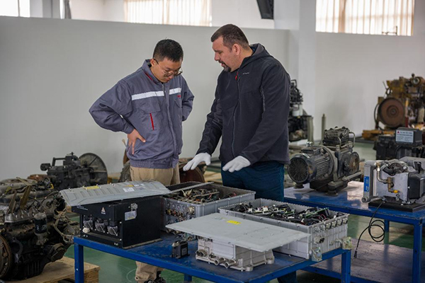 Ivan Palurovic和Vekoslav Ilic是苏州金龙在塞尔维亚的属地化员工。两人分别于2019年和2022年加入海格塞尔维亚售后服务团队,除了常规化的线上培训之外,2023年两人还应邀来中国开展为期2周的专项培训,培训内容包括海格企业文化、新能源及常规车技术培训、实车故障排查等,确保提升外籍员工技术能力的同时,让他们感受到公司的人文关怀,加强文化认同归属感。2023年3月,他们和其他来自世界各地的外籍员工陆续抵达中国,参加了为期半个月的培训。培训共分为两部分,第一周为技术培训,从基础的电气原理、线束图教学,到CAN网络,涵盖苏州金龙各类产品系列;同时针对海外新能源市场快速扩张的市场现状,苏州金龙还为Ivan等服务人员专门安排了新能源系统相关课程,让外籍员工进一步熟悉和了解新能源车辆故障处理流程及技巧。培训过程中,学员与讲师相互讨论,相互提问,在实车上发现、解决问题,学习知识技能。培训结束后员工们还接受了相应的理论和实操考试,帮助学员巩固新知识。在第二周的培训中,外籍员工们参观了苏州金龙工厂,了解了公司发展历史,在提升知识水平的同时,也分享了精益生产、售后服务等工作的重点难点,为后续苏州金龙全球化服务的开展打下坚实基础。