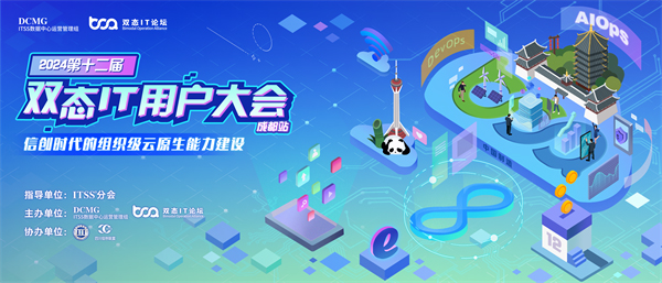 2024年,DCMG和双态IT论坛决定在成都都江堰联合举办第十二届双态IT用户大会。本届大会以“信创时代的组织级云原生能力建设”为主题举办“组织级云原生开发能力建设”“组织级云原生运维能力建设”两场主题会议,同期举办几大主题专场。