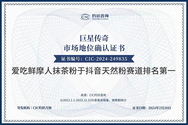 CIC灼识咨询在中国天然粉行业有长期丰富的研究经验。在2024年1月到2月期间,CIC灼识咨询就中国天然粉行业进行了全面梳理,对2023年中国天然粉市场的竞争格局、品牌销售、产品类目等进行了研究与分析。在此基础上,CIC灼识咨询与行业专家进行深度访谈及数据交叉验证,确认各品牌天然粉在抖音渠道的销售情况。CIC灼识咨询基于对中国2023年天然粉市场的调研和分析,在抖音天然粉赛道上,爱吃鲜摩人抹茶粉销量、销售额位列全国第一,因此,CIC灼识咨询确认巨星传奇“爱吃鲜摩人抹茶粉于抖音天然粉赛道排名第一”的市场地位。