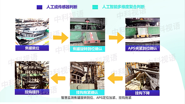人工监管的方式容易由于人员疲劳、精力不集中等情况,造成误判及生产停滞,因此,一种智能、可靠、准确的解决方案来保证焦罐安全提升非常必要。“中科视语”AI视觉预警平台正是这样一款专门用于工业安全领域的创新产品。它集成了雷视一体高清摄像头、传感器、AI算法、边缘计算等前沿技术,实现了对工业生产全过程的智能监控和预警。该平台在现有红焦装入工作流程中融入人工智能多维复合判断手段,智慧监测焦罐旋转到位、APS夹紧、挂钩抱紧三个关键环节,高效提升监管生产安全系数。