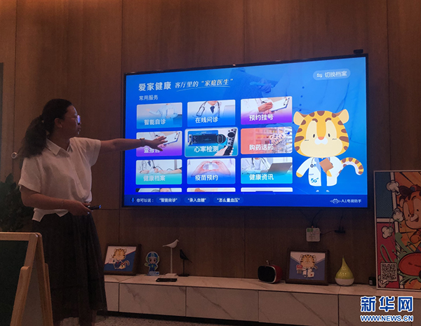 图为工作人员正在介绍“爱家健康”平台服务内容,新华社记者浦超摄(资料图片)。
