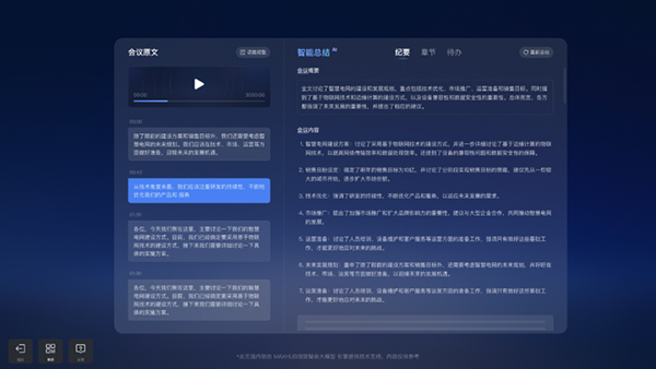 得益于在企业服务的多年积累和实践,MAXHUB应用大模型+智能硬件的方式,实现了线下协作中的多模态信息采集、会议分析、内容总结、内容回溯等能力,以源源不断的行为数据,持续锤炼更专业的行业大模型,提升应用准确率。