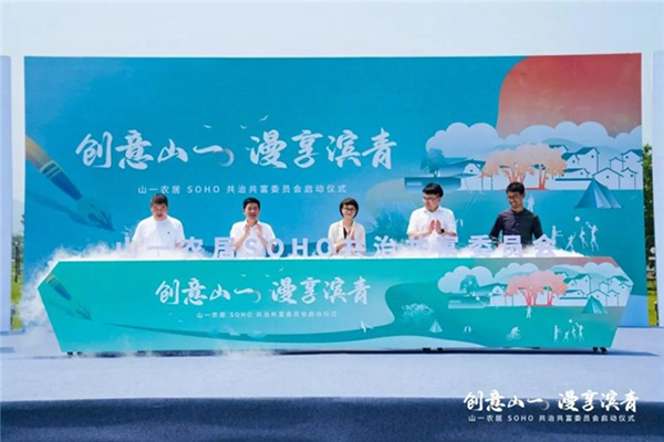 最后,于林芳,共富共治委员会牵头单位代表,山一社区、园区运营单位负责人上台,为农居SOHO共治共富委员会正式启动。