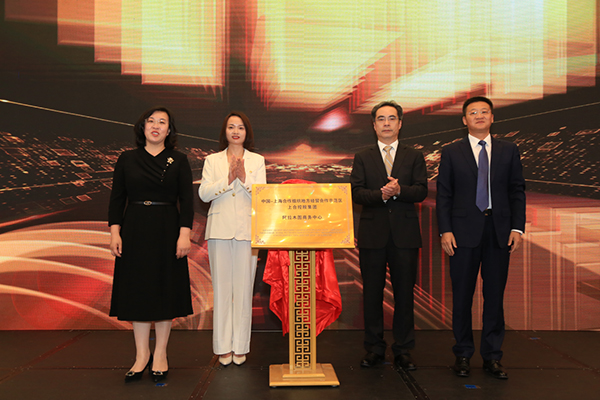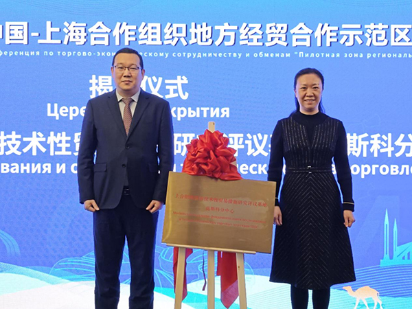 图为上合组织国家技贸研究评议基地莫斯科分中心揭牌仪式现场