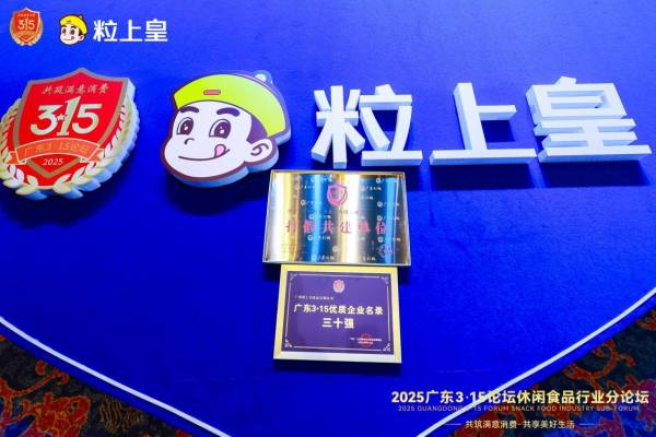 作为休闲食品行业的杰出代表,粒上皇一直将筑牢食品安全防线视为企业发展的根本使命,矢志不渝地确保为消费者提供优质、放心的产品。多年来,粒上皇凭借卓越的产品质量、严谨的生产工艺以及诚信经营的理念,在市场中树立了良好的口碑。公司连续两年入选“广东3·15放心消费品牌”,并荣登“广东3·15优质企业名录三十强”,这两项殊荣充分彰显了其在食品安全与消费者权益保护方面的杰出贡献,也体现了市场和消费者对粒上皇品牌的高度认可。