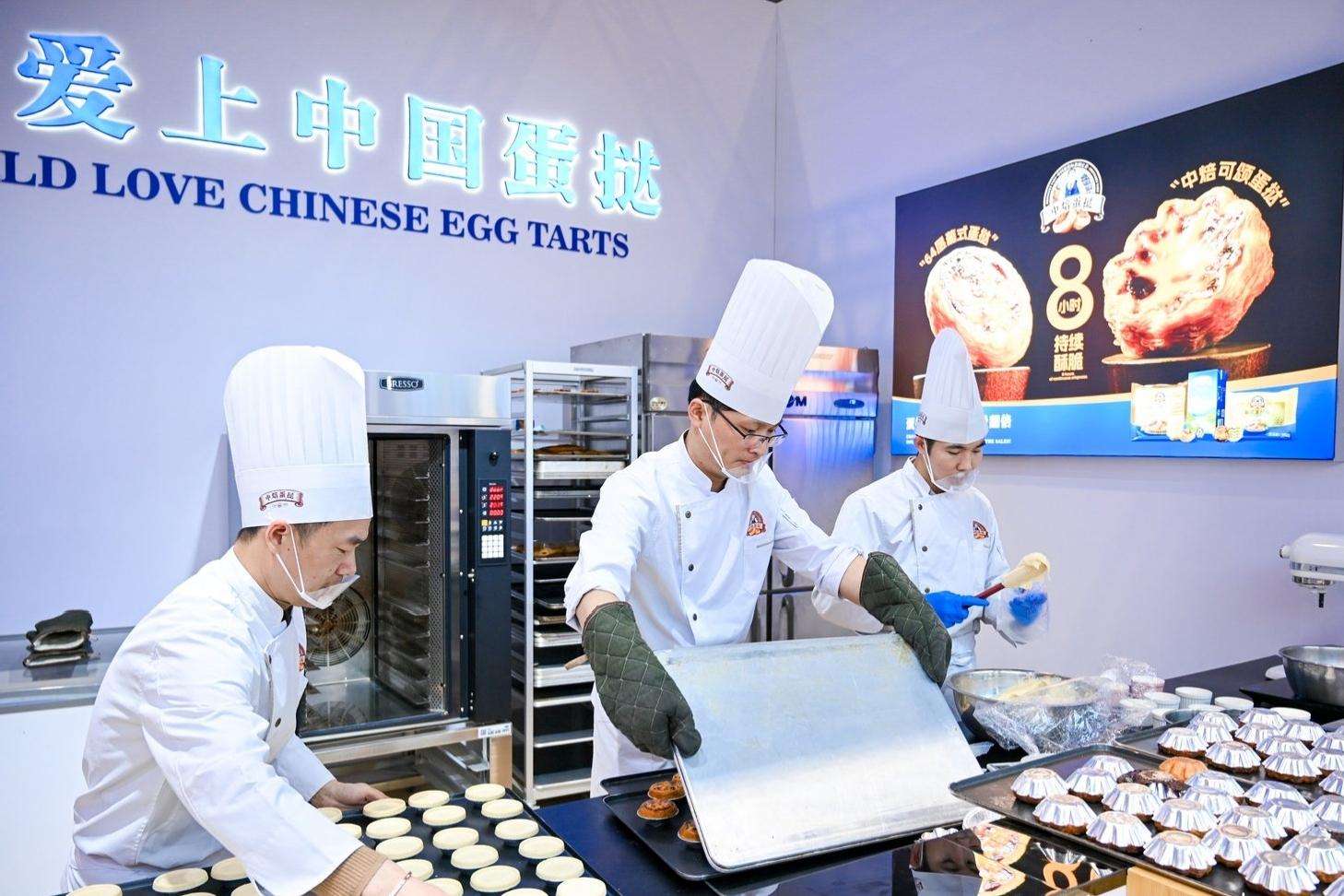 中焙蛋挞展厅不仅配备了透明化烘烤间,实景演示蛋挞制作全流程,展现产品的优势性能;还集中展示了中焙的经典畅销品和创新爆品,包括经典葡式蛋挞、中焙可颂挞、纽焙客调理奶油、法式奶香片和花式可颂蛋挞等,现场香气扑鼻,吸引大量客户品尝,直观感受“蛋挞选中焙,好吃量翻倍”的味觉魅力。